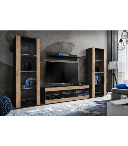 Komodee Ensemble de Meubles Tivoli Grande, Noir/Wotan, Largeur 250cm x Hauteur 159cm x Profondeur 35cm, sans LED, 3 étagères, pour Salon, Chambre,