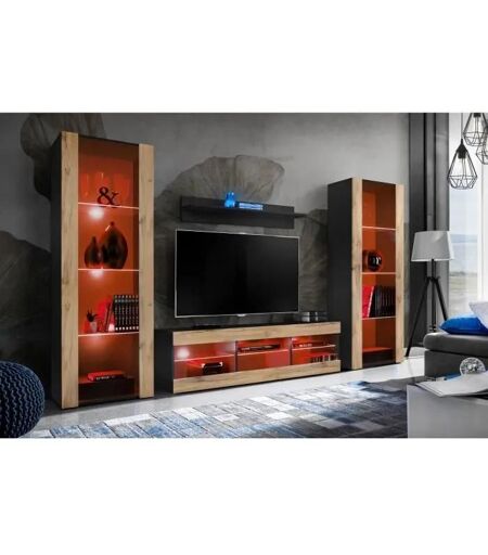 Meuble Tv - Tivoli Set Grande Komodee - Led Rgb - Bois Naturel Mat & Noir - L 195cm X H 159cm X P35cm