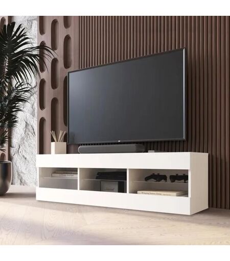 Meuble Tv Tivoli Rtv Komodee - Sans Led - Blanc - Facades En Mat - 140 X 41 X 35 Cm