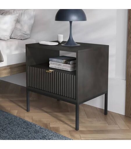 Table De Chevet Komodee Nanaimo Sto2 Frontal En Relief Noir Noir 39 X 54 X 56 Cm