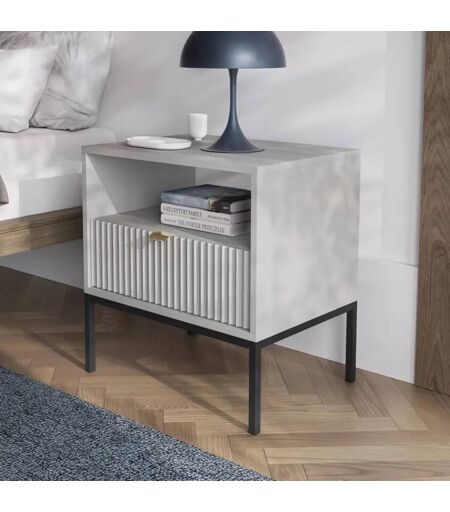 Table De Chevet Komodee Nanaimo Sto2 Frontal En Relief Gris Gris 39 X 54 X 56 Cm