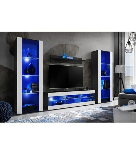 Meuble Tv Tivoli Set Grande Komodee - Led Bleues - Blanc Mat Et Noir - 250cm X 159cm X 35 Cm