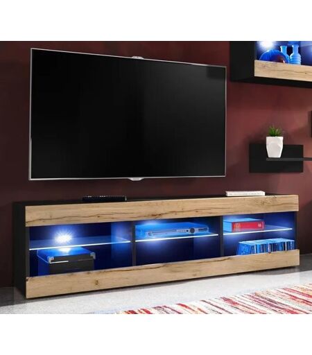 Meuble Tv Tivoli Rtv Komodee - Led Bleues - Bois Naturel Mat Et Noir - 140 X 41 X 35 Cm