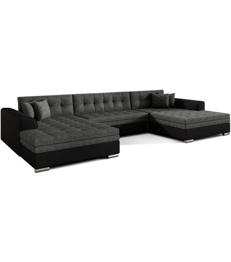 LES TENDANCES Canapé panoramique convertible VIRA en bi-matiére-Noir/Noir
