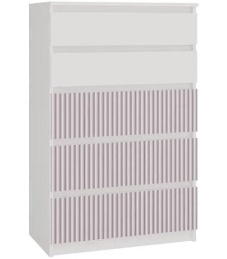 Commode Aster à cinq tiroirs apportera une touche de modernité et harmonie à la chambre de votre enfant. Avec sa matière, ses lignes épurées et ses détails, elle s'accordera parfaitement à votre intérieur. Sa structure en panneaux de particules mélaminés se caractérise par une grande durabilité et une finition tendance. ...
