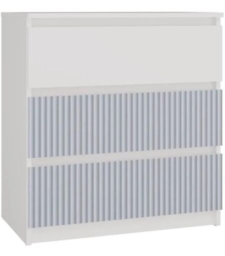Aster T3 - Commode Chambre-Bureau Pour Enfant - 70x40x77 - 3 Tiroirs - Meuble De Rangement Moderne - Blanc Et Bleu