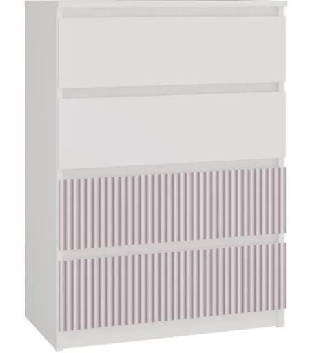 Aster T4 - Commode Moderne 4 Tiroirs - 97x70x40 - Meuble De Rangement Enfant - Blanc Et Rose