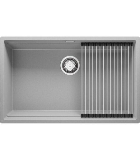 Primagran - Evier Cuisine en Granit 76x47cm, Lavabo 1 bac + Kit de Vidage + Égouttoir Enroulable, Évier à Encastrer au meuble 80cm - Prague Slim, Gris