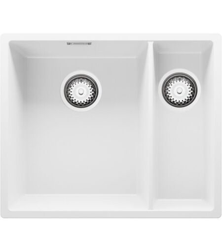 Primagran - Evier Sous Plan 56x47cm, Evier en Granit 1,5 bacs + Kit de Vidage, Évier au meuble 60cm - London Duo, Blanc