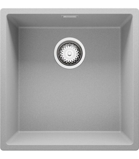 PRIMAGRAN Evier Cuisine en Granit 46x47cm, Lavabo 1 bac + Kit de Vidage, Évier à Encastrer au meuble 50cm - London Slim, Gris