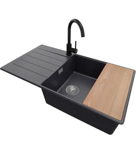Primagran - Evier Cuisine en Granit 90x50cm, Lavabo 1 bac + Robinet 32x20cm + Kit de Vidage + Accessoire, Évier à Encastrer au meuble 60cm