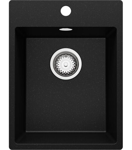 Primagran - Evier Cuisine en Granit 38x50cm, Lavabo 1 bac + Kit de Vidage, Évier à Encastrer au meuble 40cm - Riga, Noir Métallisé