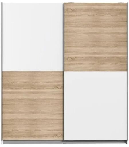 FINLANDEK Armoire - En panneaux de particules décor chene et blanc - Style et design contemporain - 2 portes coulissantes - Elle est composée de 5 tablettes, 2 tringles ce qui vous permettra de bien ranger vos affaires - Fabrication européenne - Dimensions L 170,3 x P 61,2 x H 190,5 cm. ...