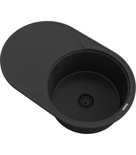 Granitan - vier de cuisine rond en granit 1 cuve grand égouttoir siphon noir savio