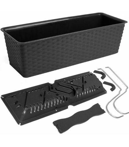 La jardinière pour tous les types de balcons ! Cette jardinière en plastique incassable et résistant aux intempéries est idéale pour les plantations dans votre jardin, sur votre balcon, dans votre appartement ou dans votre jardin d'hiver. Son revêtement effet poly rotin est parfaitement approprié pour une utilisation aussi bien intérieur que extérieur. Ce set de jardinière est équipé d'un système d'auto-arrosage et sera livré avec le système de montage, comprenant les crochets et les supports de montage. La jardinière est disponible en plusieurs couleurs ainsi qu'en différentes contenances : 49 x 16 x 17,5 cm (12 litres) ou 39 x 16 x 14,5 cm (6 litres) Avantages du produit : - Pour espaces intérieurs et extérieurs - En plastique robuste et raffiné - Résistant aux intempéries et aux UV - Système d'auto-arrosage - Effet poly rotin - Disponible en 6 et 12 litres - Comprenant le système de montage (crochets, supports de montage) Caractéristiques techniques : - Matériau : plastique ...