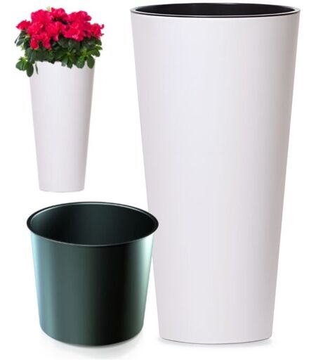 Pot de fleurs TUBUS SLIM AVEC INSERT en plastique (polypropylène). TUBUS est une série complète de pots de fleurs décoratifs de Prosperplast aux formes élégantes et classiques. La simplicité et le minimalisme de la collection TUBUS offrent des possibilités illimitées pour créer des intérieurs uniques. L'insert permet de réduire la quantité de terre dans le pot. La série de pots de fleurs mats. ...