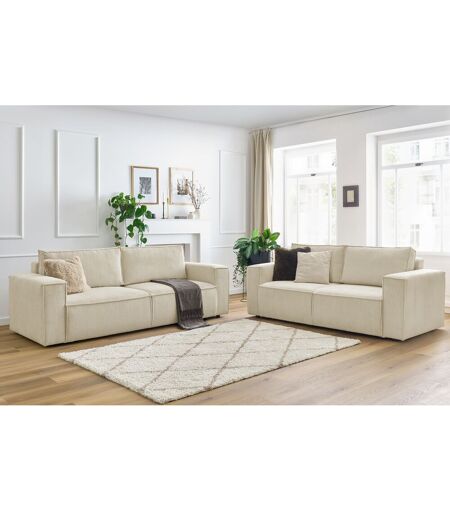 Ensemble canapé droit fixe 3 + 2 places NIHAD velours côtelé beige BOBOCHIC