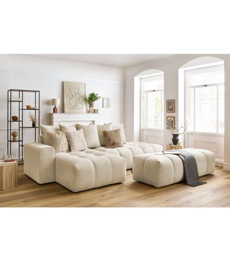 Canapé d'angle fixe MONT-BLANC velours avec pouf beige angle gauche BOBOCHIC 4 places Angle gauche