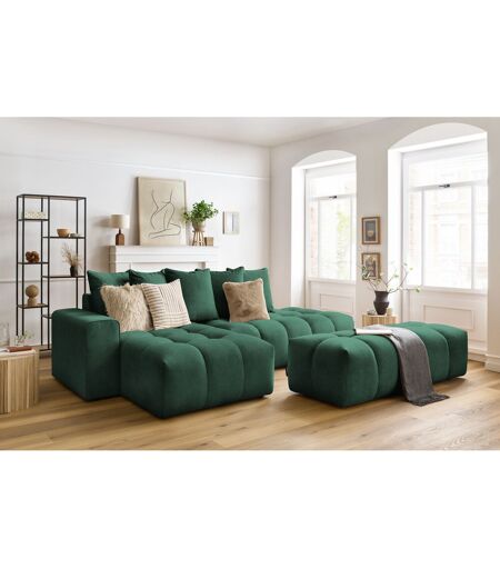 Canapé d'angle fixe MONT-BLANC velours avec pouf vert angle gauche BOBOCHIC 4 places Angle gauche