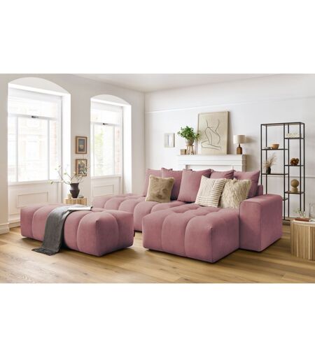 Canapé d'angle fixe MONT-BLANC velours avec pouf rose angle droit BOBOCHIC 4 places Angle droit