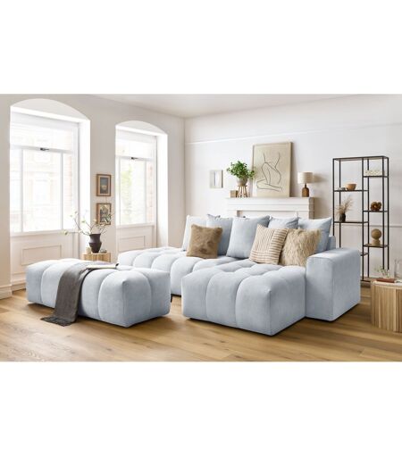 Canapé d'angle fixe MONT-BLANC velours avec pouf gris clair angle droit BOBOCHIC 4 places Angle droit