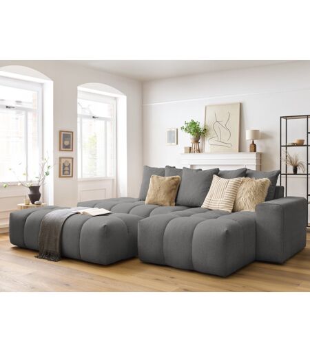 Canapé d'angle fixe MONT-BLANC tissu avec pouf gris foncé angle droit BOBOCHIC 4 places Angle droit