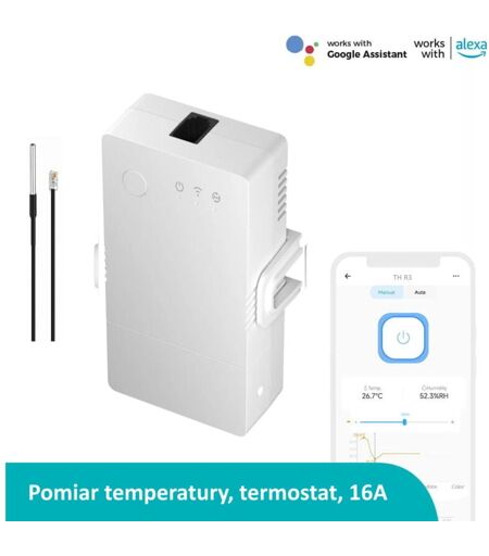 Sonoff TH Origin - Relais Wifi avec mesure de température et fonction thermostat Fonctions Sonoff TH Origin THR316 Mesure de température à distance et, en fonction des paramètres définis, contrôle automatique du relais intégré à l'appareil. Relais intégré avec une capacité de charge admissible de 16A Contrôle en mode manuel , où nous utilisons un interrupteur virtuel pour allumer ou éteindre le récepteur connecté à la sortie Sonoff TH Origin THR316 Fonctionnement automatique comme thermostat Contrôle automatique en fonction de l'heure du jour, de l'heure et du planning Historique des mesures avec possibilité de le télécharger au format .xlsx fichier Intégration avec Home Assistant Coopération avec les capteurs : température DS18B20, humidité THS01, humidité du sol MS01 Accès à distance L'application de contrôle Sonoff TH - eWeLink vous permet de visualiser la température et de contrôler le relais intégré depuis n'importe où dans le monde. Pour fonctionner, Sonoff nécessite un accès ...