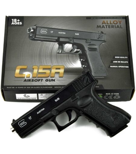Pistolet de police Réplique en métal Billes ASG ⬇️ Réplique de pistolet GLOCK 19 ⬇️ ⌛ Quantité limitée ⌛ ⭐ ⭐ ⭐ ⭐ ⭐ ⭐ ⭐ ⭐ Le cadeau parfait pour tout amateur de gadgets MILITAIRE ! Pourquoi acheter cette arme ? ✅ Reproduction parfaite vous vous sentirez comme dans un film hollywoodien grâce à la reproduction parfaite du pistolet le poids du pistolet soutient le sensation réelle glissière et corps en métal fabriqué dans un matériau durable imitant un vrai pistolet surface rugueuse poignées permettent au pistolet de tenir confortablement dans la main les poignées sont finies avec une texture confortable et antidérapante seule la détente et le chargeur sont en plastique ABS Notre réplique reflète presque parfaitement l'original ! ✅ Construction solide lourde, grâce à la métal construction métal glissière corps du pistolet en métal, qui est résistant aux bosses , abrasions et rayures ce qui vous permet de garder l'arme dans parfait état visuel détente ergonomique, ajustée à votre main ...