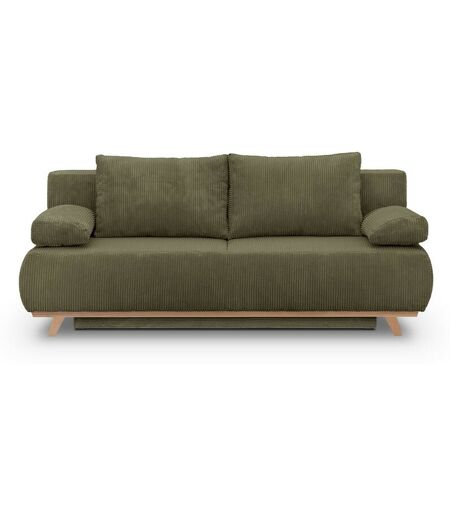 Homifab - Canapé convertible 3 places avec coffre de rangement en velours côtelé vert kaki - Laria
