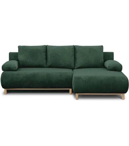 Canapé D'angle Droite Convertible - 3 Places - Mika - Tissu Velours Côtelé Vert Foncé - Coffre De Rangement - 192 X 84 X 93 Cm