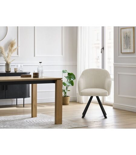 LA COLLECTION Assortissez vos chaises à votre canapé et offrez-vous un intérieur 100% harmonieux avec les nouvelles collections de chaises BOBOCHIC ! Découvrez la collection de chaises SOPHIE au design irrésistible et au confort incomparable. Fabriquées en Europe dans nos usines de canapés, avec les mêmes tissus que ces derniers, offrez-vous des objets déco très tendance, qui sauront apporter une touche unique à votre salon, tout en vous offrant des assises supplémentaires ! LE PRODUIT Des chaises au look incomparable Envie de vous créer un séjour au style unique et très tendance ? Avec les nouvelles collections SOPHIE laissez-vous séduire par des chaises au look incomparable et à même d'apporter une touche design à votre salon. Tout d'abord, avec ces différents tissus disponibles, vous pourrez facilement assortir vos chaises à votre canapé et vous créer un intérieur cohérent et harmonieux. Enfin, appuyez le côté design de votre séjour avec la déclinaison de chaises SOPHIE avec ses pieds en étoile très tendance ! /p> Apportez de l'élégance à votre séjour avec le velours côtelé Le velours côtelé apporte une aura d'élégance et de noblesse à tout ce qu'il touche. Avec les chaises SOPHIE en tissu velours côtelé, offrez à votre pièce des objets déco irrésistibles et à même de vous offrir un confort et une douceur de grande qualité. Ces dernières sauront accueillir vos proches dans les meilleures conditions, tout en apportant une touche design très tendance à votre intérieur. Pour vous créer un intérieur harmonieux, n'hésitez pas à associer les chaises SOPHIE en tissu velours côtelé avec les canapés des collections suivantes : NIHAD, MEGEVE, DOBLO, AUGUSTIN, MEGA, LAFAYETTE, VOLTAIRE, LEONARD, ROUSSEAU, THEA. LES CARACTÉRISTIQUES Revêtement : Tissu velours côtelé Composition du tissu : 100% polyester Garnissage dossier : Mousse HD Densité dossier (kg/m3) : 30 Garnissage assise : Mousse HD Densité assise (kg/m3) : 30 Matière Pieds : Métal Style : Moderne Empilable : Non Longueur totale (cm) : 64 Largeur totale (cm) : 63 Hauteur totale (cm) : 88 Hauteur dossier (cm) : 38 Hauteur d'assise (cm) : 51 Profondeur d'assise (cm) : 47 Hauteur des pieds (cm) : 41 Epaisseur de l'assise (cm) : 10 Charge maximum (Kg) : 120 Hauteur de l'accoudoir (cm) : 66/75 Tissu anti bouloches : Oui Tissu résistant aux accrocs : Oui Sélection responsable : Fabriqué en Europe Accoudoir : Oui Fabrication : Europe A monter soi-même : Oui (Kit) Garantie : 2 ans ...