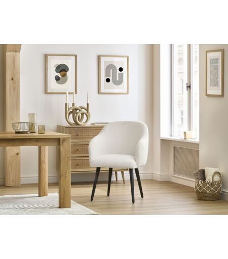 LA COLLECTION Assortissez vos chaises à votre canapé et offrez-vous un intérieur 100% harmonieux avec les nouvelles collections de chaises BOBOCHIC ! Découvrez la collection de chaises SOPHIE au design irrésistible et au confort incomparable. Fabriquées en Europe dans nos usines de canapés, avec les mêmes tissus que ces derniers, offrez-vous des objets déco très tendance, qui sauront apporter une touche unique à votre salon, tout en vous offrant des assises supplémentaires ! LE PRODUIT Des chaises au look incomparable Envie de vous créer un séjour au style unique et très tendance ? Avec les nouvelles collections SOPHIE laissez-vous séduire par des chaises au look incomparable et à même d'apporter une touche design à votre salon. Tout d'abord, avec ces différents tissus disponibles, vous pourrez facilement assortir vos chaises à votre canapé et vous créer un intérieur cohérent et harmonieux. Enfin, apportez une touche d'élégance supplémentaire à votre séjour avec les collections de chaises SOPHIE et leurs pieds scandinaves en bois noir. Créez-vous un intérieur doux et cocooning Quoi de plus agréable que de s'installer sur une chaise et se sentir comme dans un petit cocon de douceur ? Les chaises SOPHIE en tissu bouclette vous garantissent cela. Avec le revêtement en tissu bouclette, profitez d'un confort incomparable et d'une sensation de chaleur particulièrement apaisante. Idéales si vous souhaitez vous créer un espace cocooning et reposant, où vous accueillerez vos proches dans une pièce à l'atmosphère unique ! Pour vous créer un intérieur harmonieux, n'hésitez pas à associer les chaises SOPHIE en tissu bouclette avec les canapés des collections suivantes : CEZANNE, MEGEVE, AUGUSTIN, ENVY, BOURBON, BALZAC et VENDÔME. LES CARACTÉRISTIQUES Revêtement : Tissu bouclette Composition du tissu : 100% polyester Garnissage dossier : Mousse HD Densité dossier (kg/m3) : 30 Garnissage assise : Mousse HD Densité assise (kg/m3) : 30 Matière Pieds : Bois Empilable : Non Longueur totale (cm) : 64 Largeur totale (cm) : 63 Hauteur totale (cm) : 88 Hauteur dossier (cm) : 38 Hauteur d'assise (cm) : 51 Profondeur d'assise (cm) : 47 Hauteur des pieds (cm) : 39,5 Charge maximum (Kg) : 120 Hauteur de l'accoudoir (cm) : 66/75 Tissu résistant aux accrocs : Oui Accoudoir : Oui Epaisseur de l'assise (cm) : 10 Style : Moderne Fabrication : Europe A monter soi-même : Oui (Kit) Garantie : 2 ans ...