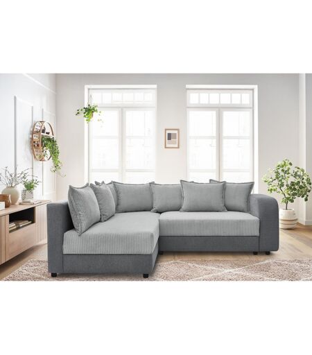 Canapé d'angle convertible coffre BASILE bi matière gris clair et gris foncé angle gauche BOBOCHIC 3 places Angle gauche