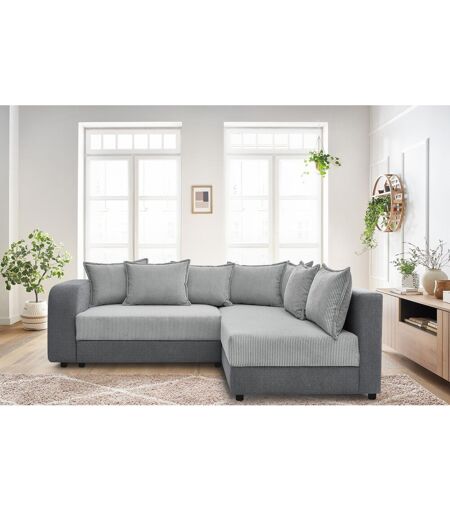 Canapé d'angle convertible coffre BASILE bi matière gris clair et gris foncé angle droit BOBOCHIC 3 places Angle droit