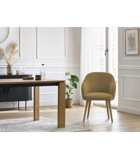 Lot de chaises SOPHIE tissu velours côtelé et pieds scandinaves bois gris foncé et jaune BOBOCHIC
