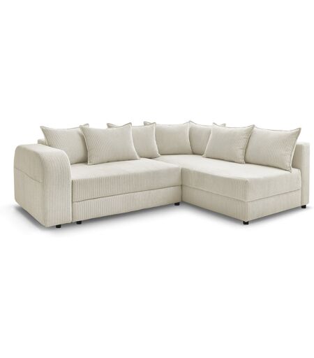Canapé d'angle convertible coffre BASILE velours côtelé beige angle droit BOBOCHIC 3 places Angle droit