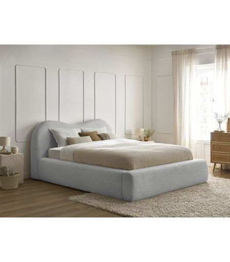 Lit coffre ORLANE tissu bouclette gris clair 160x200 BOBOCHIC 160x200