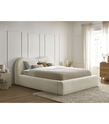 Lit coffre ORLANE tissu bouclette beige 160x200 BOBOCHIC 160x200