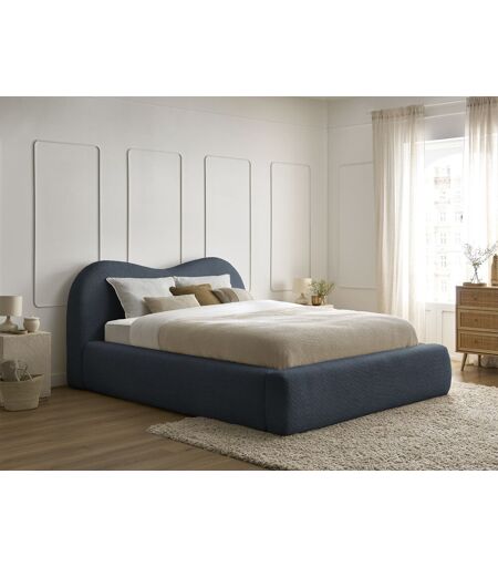 Lit coffre ORLANE tissu bouclette bleu foncé 180x200 BOBOCHIC 180x200