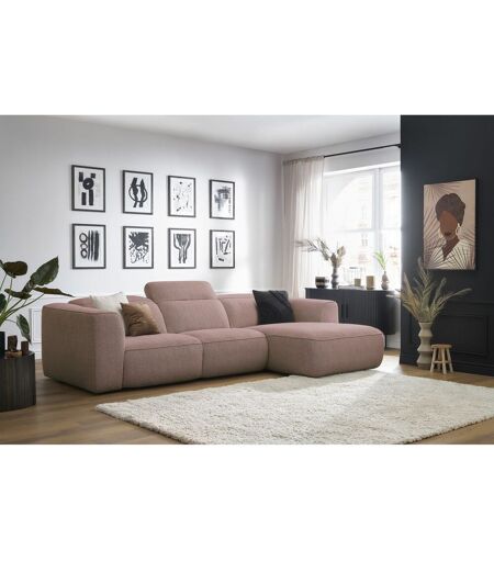 Canapé d'angle fixe WILLIAM avec têtières rose angle droit BOBOCHIC 3 places Angle droit