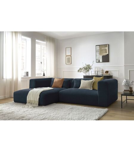 Canapé d'angle fixe HARRY gros côtelé doux bleu foncé angle gauche BOBOCHIC 3 places Angle gauche