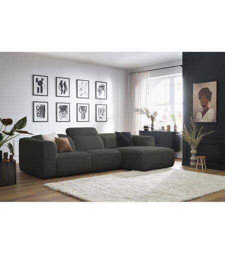 Canapé d'angle fixe WILLIAM avec têtières gris foncé angle droit BOBOCHIC 3 places Angle droit