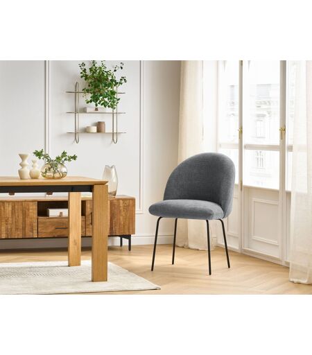 Chaise LALIE tissu texturé et pieds métal noir gris foncé BOBOCHIC