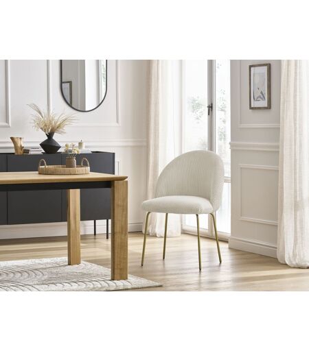 Chaise LALIE tissu velours côtelé et pieds métal or beige BOBOCHIC