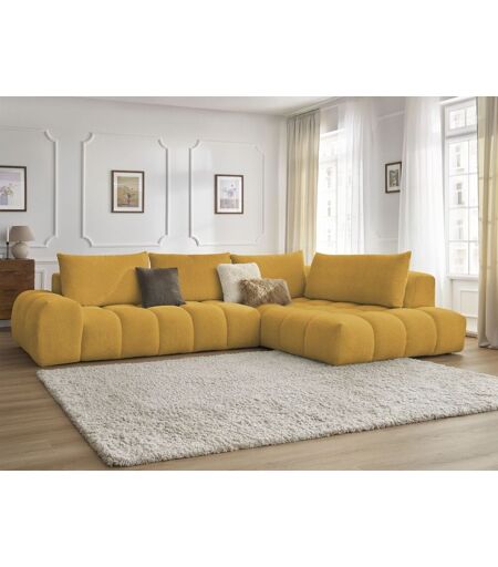 Canapé d'angle fixe EVEREST tissu chiné jaune angle droit BOBOCHIC 4 places Angle droit