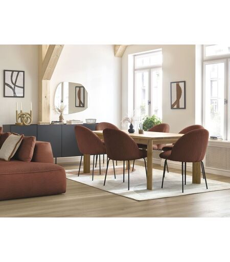 Lot de chaises LALIE tissu velours côtelé et pieds métal noir orange BOBOCHIC