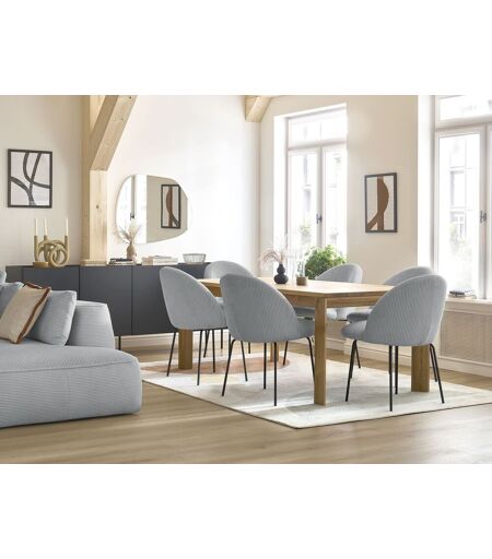 Lot de chaises LALIE tissu velours côtelé et pieds métal noir gris clair BOBOCHIC