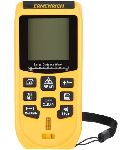 E rmenrich Reel GA50 Pour mesurer les distances, les surfaces et les volumes. Calcul basé sur le théorème de Pythagore, le Reel GA50 est un instrument indispensable pour obtenir des mesures précises sur les chantiers et les bâtiments. Ses performances sont utiles en milieu industriel, mais aussi à des fins domestiques, comme la rénovation d'un appartement. Le mètre ruban permet de mesurer des distances dans un rayon de 50 mètres, ainsi que des surfaces et des volumes. Le calcul basé sur le théorème de Pythagore est utile lorsque vous devez calculer la distance entre deux points à l'aide de mesures intermédiaires. Les valeurs mesurées sont affichées sur un écran LCD à 4 lignes et peuvent être stockées dans la mémoire de l'appareil. Sous l'écran se trouvent des boutons de commande ergonomiques. Le compteur Ermenrich Reel GA50 est très facile à manipuler : grâce à sa taille compacte et à son poids léger, il tient bien dans la main, et les alertes sonores peuvent être désactivées à tout ...