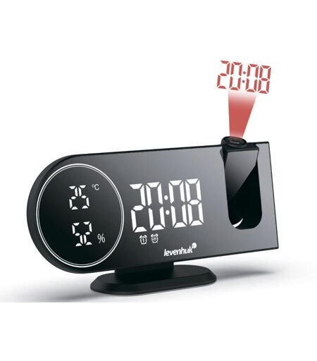 Wezzer Tick H50 Horloge-Thermomètre Comprend un projecteur. Fonctions : horloge, réveil, radio FM, thermomètre, hygro-mètre, thermo-thermomètre Le Wezzer Tick H50 deviendra certainement votre appareil préféré. L'appareil a un design très élégant : un écran LCD miroir noir, avec des diagrammes concis, très contrastés. Il est équipé d'une radio FM, d'un thermomètre et d'un hygromètre, et l'heure peut être projetée au plafond ou sur le mur grâce à un projecteur rotatif. De plus, vous pouvez recharger votre smartphone à partir de cette montre : la face arrière est équipée d'un port USB pour recharger les appareils mobiles. Toutes les données sont affichées graphiquement sur l'écran : vous pouvez voir l'heure, un réveil, une fonction snooze, ainsi que les valeurs de température et d'humidité. Vous pouvez régler la luminosité et activer le mode nuit (le rétroéclairage est automatiquement atténué). Il existe une bande d'émission et vous pouvez régler le volume. Il y a également une fonction ...