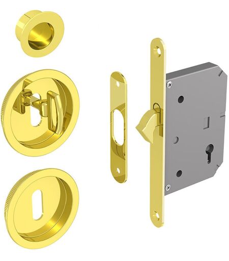 Slid'up By Mantion - Kit serrure à clés, poignée ronde, acier finition doré